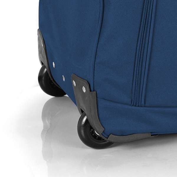 Сумка оснащена парой надежных роликовых колес. Колеса изготовлены из высокотемпературного термопластичного полиуретана (TPU). Материал обладает прочностью сравнимой с пластиком, гибкостью силикона, а так же имеет повышенную устойчивость к перепадам температур. Отличительной особенностью колес из TPU материала является снижение шума до минимума при качении чемодана по неровной поверхности. Благодаря устойчивости к истиранию материал колес отличается длительным сроком эксплуатации.