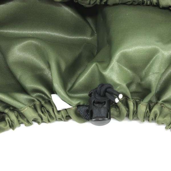Кавер изготовлен из непромокаемого прочного материала, по периметру вшит крепкий резиновый шнур, регулируется под рюкзаки объемом до 120 литров.