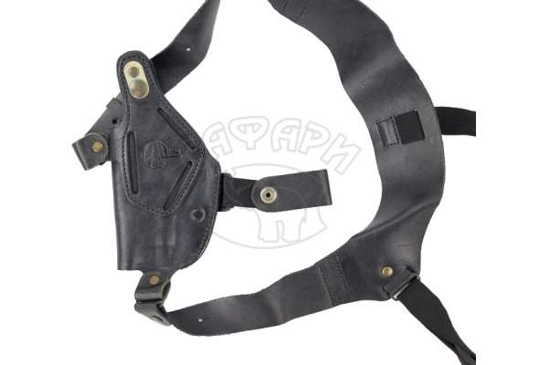 Кобура шкіряна формована поясна / плечова зі скобою виготовлена з натуральної ремінної шкіри, формується під кожну модель пістолета індивідуально. Конструкція моделі передбачає носіння зброї, як в плечовому, так і поясному варіанті. Кобура оснащена шкіряною накладкою, що забезпечує носіння кобури на поясі в трьох різних позиціях.