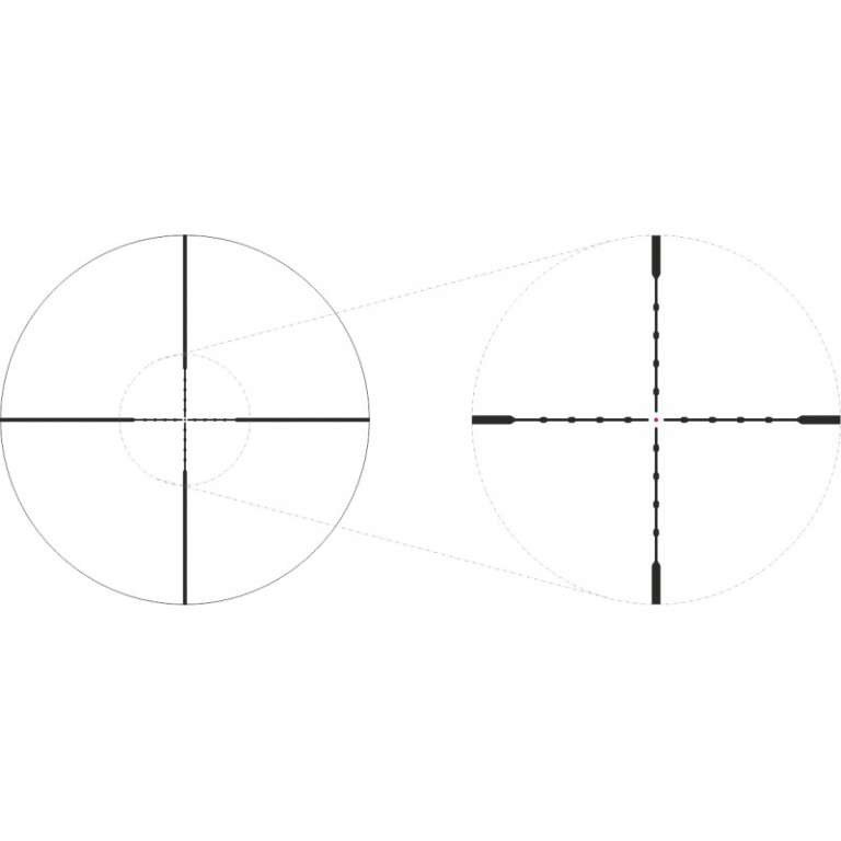 Прицельные метки Jaeger располагаются во второй (задней) фокальной плоскости – вне зависимости от выбранной кратности, метка остается тонкой и не перекрывает изображения цели. Центр прицельных меток подсвечивается. Колесо изменения яркости подсветки имеет промежуточные «нулевые» положения, что позволяет максимально быстро отключить подсветку, так же как и вернуться к предыдущему положению яркости. Интенсивность подсветки меняется в широких пределах, есть режим для использования прицела с установленным за окуляром прибором ночного видения.