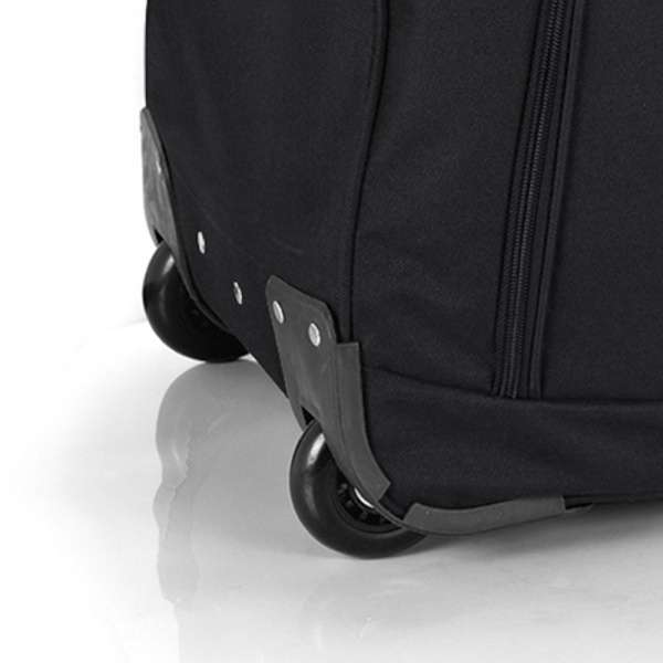 Сумка оснащена парой надежных роликовых колес. Колеса изготовлены из высокотемпературного термопластичного полиуретана (TPU). Материал обладает прочностью сравнимой с пластиком, гибкостью силикона, а так же имеет повышенную устойчивость к перепадам температур. Отличительной особенностью колес из TPU материала является снижение шума до минимума при качении чемодана по неровной поверхности. Благодаря устойчивости к истиранию материал колес отличается длительным сроком эксплуатации.