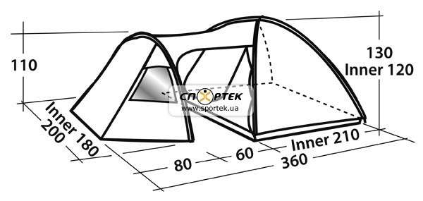 Палатка Easy Camp ECLIPSE 300 купольного типа, имеет три дуги, одна из них расположена вдали от основных и создаёт большую прихожую. По всей площади палатки есть пол а также достаточно места для доступа к сохранённым вещам. Вход осуществляется через фронтальные и боковые двери. Два окна, делают прихожую светлой и просторной.