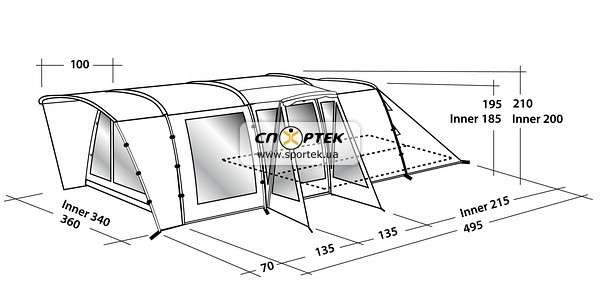 обеспечит быструю установку. Палатка туннельного типа Boston 600A обеспечивает универсальное пространство для шести человек, а её размер будет
