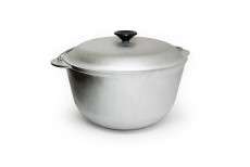 Казанок 10 л с крышкой используется в походных условиях на открытом огне.