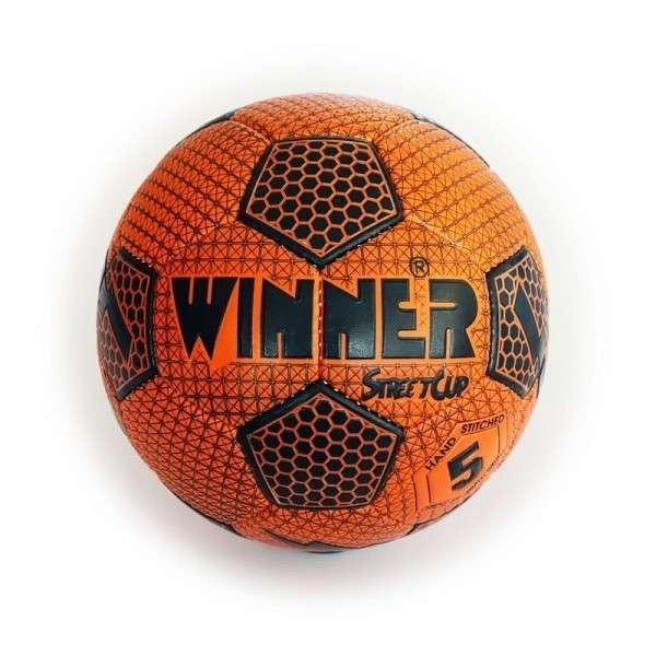 Мяч футбольный тренировочный Winner STREET CUP изготовлен из синтетической кожи (поливинилхлорид) с выгравированным на ней рисунком, с повышенной износостойкостью. Благодаря этим качествам является удачным подарком для каждого ребенка.