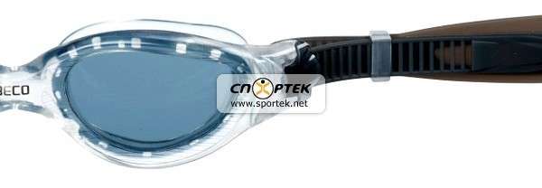 Тренировочные очки для плавания BECO Unibody 9947 с мягкой, монолитной оправой, изогнутые линзы из CP (пропионата целлюлозы) для более широкого угла обзора, раздвоенный ремешок, защита от ультрафиолета и запотевания.