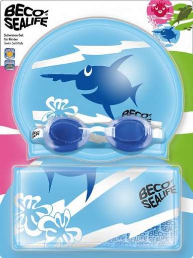 Детский набор для плавания Beco 96054. В наборе: силиконовая шапочка, очки и нейлоновая сумочка в виде рюкзачка. Набор представлен в двух цветах с красивым дизайном.