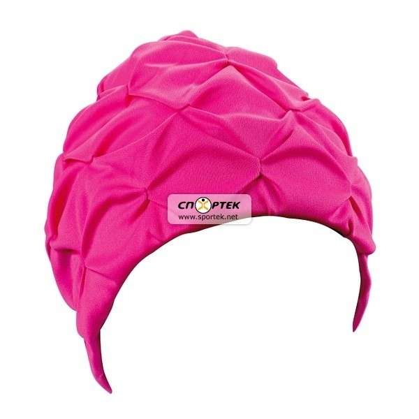 Шапочка для плавания женская BECO тканевая, модельная с непромокающей подкладкой. С внутренней стороны по контуру шапочки нанесён слой вспененной резины для лучшего прилегания.
