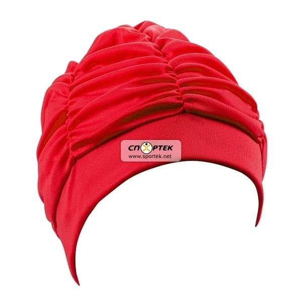Шапочка для плавания женская BECO тканевая с непромокающей подкладкой, модельная . С внутренней стороны по контуру шапочки нанесён слой вспененной резины для лучшего прилегания.