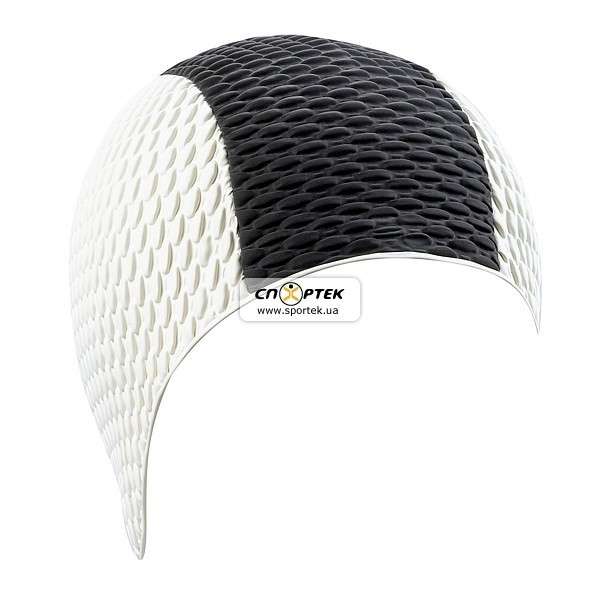 Шапочка для плавания Beco 7331. Резиновая шапочка для мужчин с декором - пузырьки. Удлинённая форма. Вспененный уплотнитель. Безразмерная.