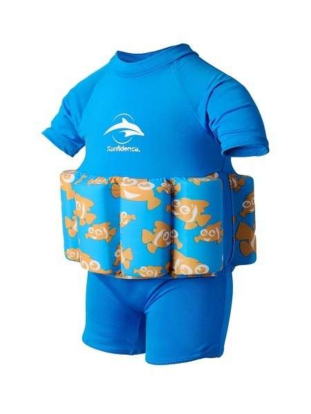 Детский купальник Floatsuit Konfidence в цвете Clownfish для детей 2-3 лет и 4-5 лет со специальными вставками из пенопласта поддерживают ребенка на воде, значительно облегчая процесс обучения плаванию.