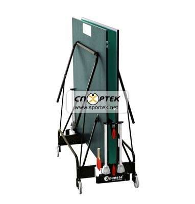 Стол теннисный S 1-72 i от торговой марки Sponeta - один из серии любительских столов для игры в настольный теннис. Эта модель используется исключительно в помещении и имеет специальное антибликовое покрытие. Стол изготовлен из качественных материалов, очень устойчив и компактен. Металлическая рама из профиля 25 мм с полиэфирным покрытием и автоматическое шасси с крючком для блокировки. Стол легко перемещается на 4-х колёсах ø125 мм. У основания стола расположен держатель для ракеток и мячиков. В комплект стола входит сетка чёрного цвета, что соответствует Европейским стандартам. Специальная конструкция крепления сетки позволяет не снимать её после каждой игры. Конструкция стола позволяет тренироваться в одиночку.