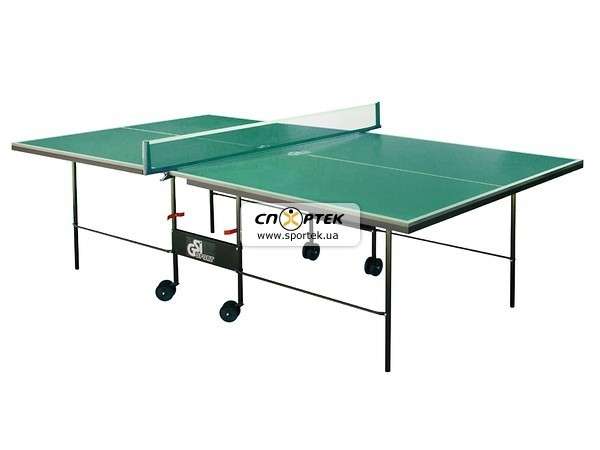 В качестве материала для игровой поверхности используется специально обработанная древесностружечная плита (ДСП) толщиной 16 мм. На ДСП нанесено специальное антибликовое пластиковое покрытие синего (маркировка Gk) либо зеленого (маркировка Gp) цвета. Игровая поверхность оснащена металлической рамой (прямоугольный профиль 30*20 мм). Теннисный стол базируется на компактной удобной тележке. Тележка изготовлена из металлического трубчатого профиля диаметром 25 мм с полиэфирным покрытием и оснащена независимым складным механизмом. Конструкция стола позволяет тренироваться в одиночку.