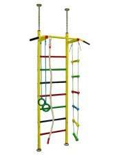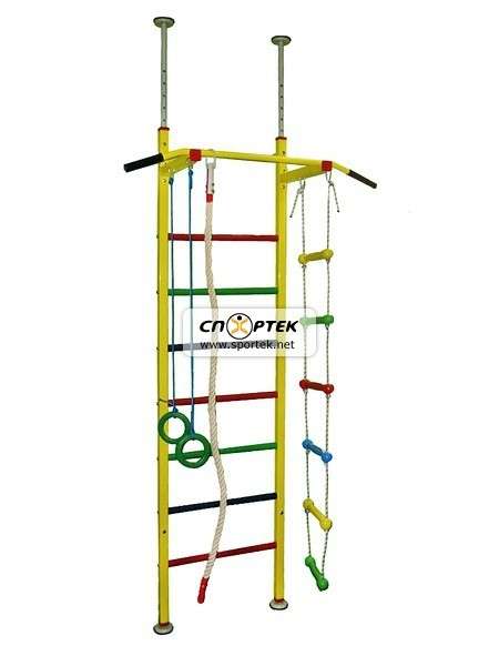 Шведская стенка для детей «Киндер» - домашний тренажёр предназначен для общефизической подготовки ребенка в условиях современной малогабаритной квартиры. Занятие на тренажёре способствует повышению двигательной активности, укреплению мышц и развитию координации движений ребёнка. Тренажёр позволит выполнять общеукрепляющие и развивающие упражнения в игровой форме. Наличие в тренажёре перекладины из дерева с пластиковым покрытием, каната из натурального материала , навесной лестницы с пластмассовыми перемычками позволяет ребёнку удобно и безопасно заниматься на тренажере. Все металлические детали покрыты полимерным покрытием. Тренажёр "Киндер" легко монтируется и в собранном состоянии занимает не более 0,5 м². Тренажёр с опорой "пол-потолок" при высоте помещения более 2,85 м рекомендуется крепление к стене. Крепление к стене осуществляется четырьмя выносными кронштейнами с помощью анкерных болтов. Усиленная конструкция, допускает максимальный вес занимающихся - 120 кг.