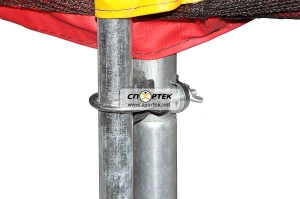 Каркас батута из оцинкованных труб (34 мм диаметром) очень прочный и выдерживает большие нагрузки. В качестве антикоррозийной защиты используется оцинкованное покрытие как внутри так и снаружи металла. Так же все места резки/перфорации/зачистки труб оцинковываются после завершения обработки.