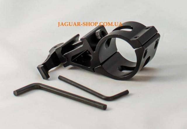 Быстросъемное крепление для прицела с диаметром трубы 30 мм на планку Weaver (21мм) со смещением оси прицела относительно оси прицельной планки. Состоит из одного кольца. Верхняя часть фиксируется двумя болтами, на прицельной планке закрепляется при помощи болта и рычага. Смещение прицела позволяет использовать также фонарь, коллиматорный прицел или лазерный целеуказатель.