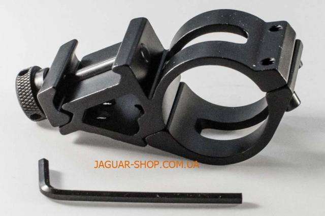 Крепление для прицела с диаметром трубы 25,4мм на планку Weaver (21мм) со смещением оси прицела относительно оси прицельной планки. Состоит из одного кольца. Верхняя часть фиксируется двумя болтами, на прицельной планке закрепляется при помощи болта с гайкой. Смещение прицела позволяет использовать также фонарь, коллиматорный прицел или лазерный целеуказатель.