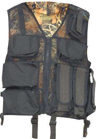 Жилет для охоты и рыбалки, фронтальная застежка на молнию. Жилет снабжен удобными карманами различного объема: три нагрудных накладных кармана, с защитным клапаном на липучке; два вместительных нижних кармана с правой стороны, с левой стороны три кармана с защитным клапаном на липучке . Внутри имеется два кармана-сетки на липучке. Основа жилета состоит из сетки.