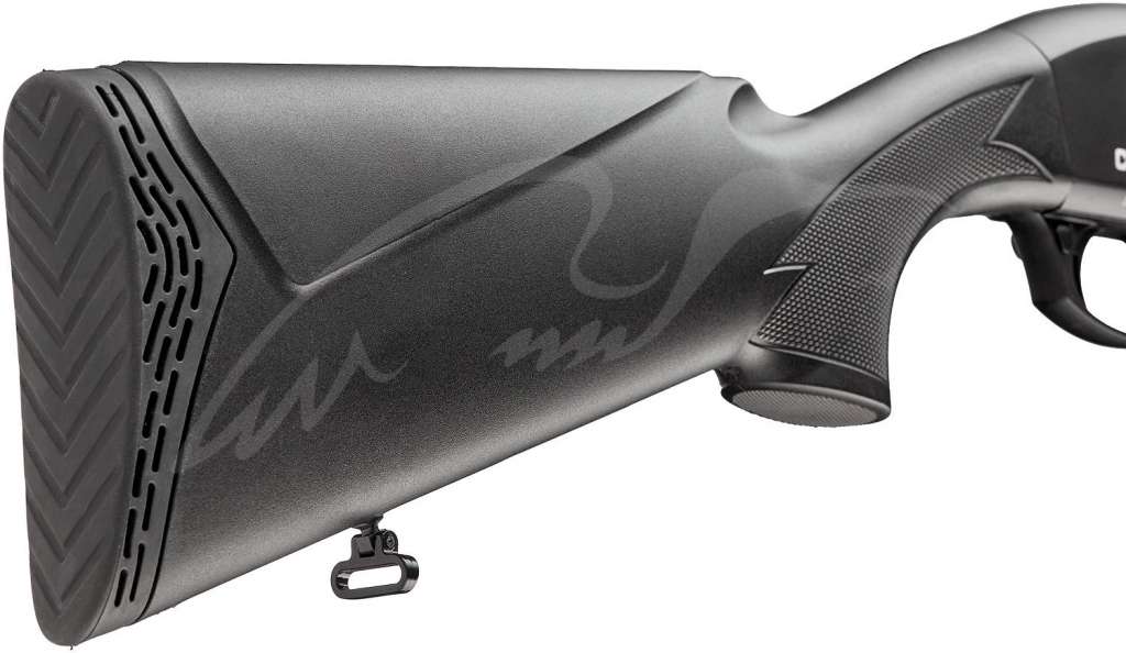 Модель также выполнена в компоновке классического полуавтоматического гладкоствольного ружья 12 калибра с подствольным магазином и газоотводным механизмом перезарядки. Хромированный ствол 71 см, с вентилируемой прицельной планкой и сменными чоками, позволит охотнику подобрать оптимальную для конкретной ситуации комбинацию. Ствол производится из сертифицированной заготовки 41CRMO4 28 мм. После сверловки, полировки калибровки стволы проходят испытание давлением 1.400 бар. Затем следует балансировка и полировка. Внутренние поверхности канала ствола и внешние поверхности подвергаются жесткому хромированию. Газоотводная система перезарядки позволяет работать с патронами с навеской от 24 грамм, без каких либо предварительных настроек.
