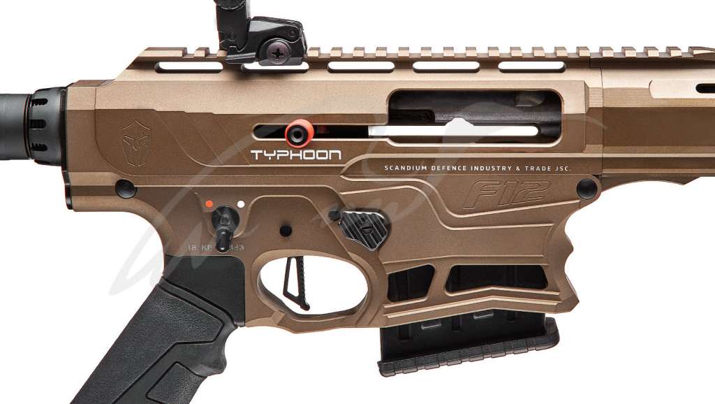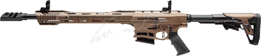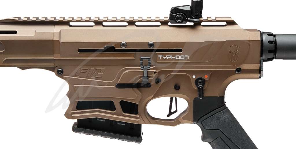 Typhoon F12 – инновационное полуавтоматическое ружье 12 калибра с газоотводной системой перезарядки. Отличительно, что F12 выполнено в компоновке платформы AR и практически полностью повторяет её органы управления, предоставляя возможность стрелкам-практикам применять уже отработанные на «черных» винтовках навыки обращения с оружием.