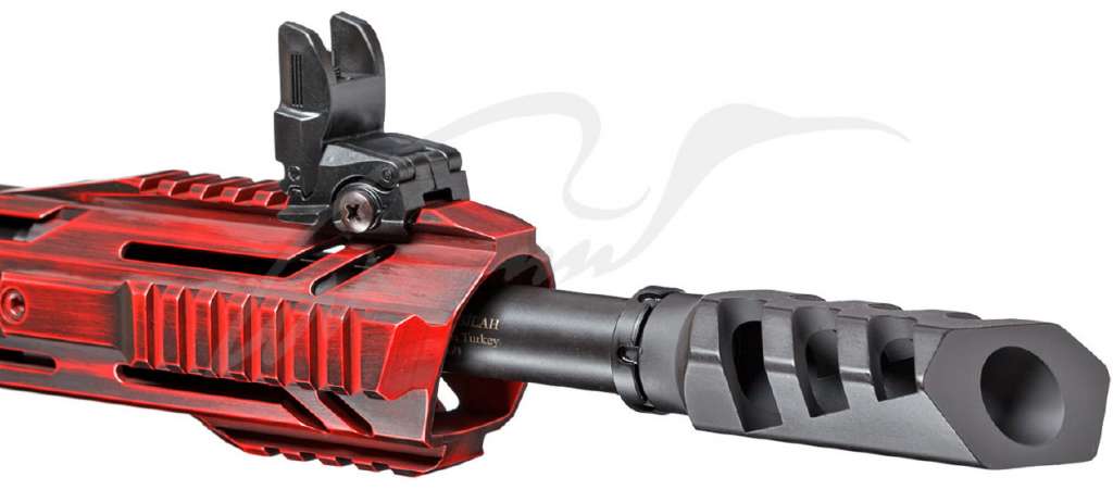 Для упрощения обращения с оружием и максимального контроля при темповой стрельбе на ствол установлен дульный тормоз, значительно снижающий подброс ствола (в модификации Sport).