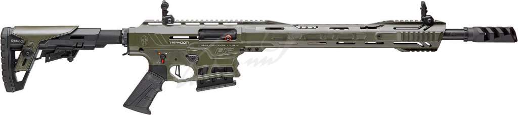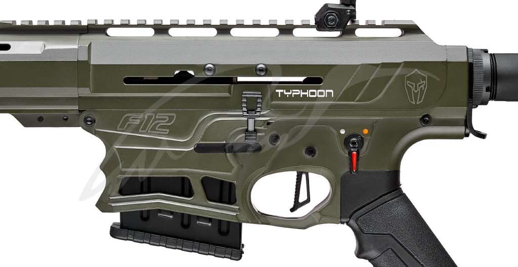 Typhoon F12 – инновационное полуавтоматическое ружье 12 калибра с газоотводной системой перезарядки. Отличительно, что F12 выполнено в компоновке платформы AR и практически полностью повторяет её органы управления, предоставляя возможность стрелкам-практикам применять уже отработанные на «черных» винтовках навыки обращения с оружием.