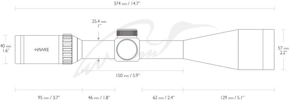 Hawke Vantage – линейка бюджетных оптических прицелов, предназначенная для установки на пневматическое и огнестрельное оружие. Прицел Vantage SF 6-24×50 прекрасно подойдет для охоты и стрельбы на дальние дистанции. Водонепроницаемый ударопрочный корпус с трубой диаметром 25,4 мм изготовлен из алюминиевого сплава. Заполнение азотом предотвращает конденсацию влаги на поверхности линз при перепадах температур. На объективе имеется внутренняя резьба для установки бленд и прочих аксессуаров. Для более удобного внесения поправок прицел оборудован низкопрофильными закрытыми барабанчиками. Полное многослойное просветление оптики (11 слоев) гарантирует четкое и контрастное изображение. Прицельная марка расположена во второй фокальной плоскости и имеет пять уровней яркости подсветки. Выгравированная на стекле прицельная сетка ½ MIL DOT IR позволяет более точно рассчитать расстояние до цели при стрельбе на дальние дистанции. Сетка отличается от классического варианта Mil-Dot более частой разметкой. Полые прицельные «пеньки» не затрудняют обзор и увеличивают диапазон прицеливания. Данная 1/2 Mil Dot верна при 10-кратном увеличении.