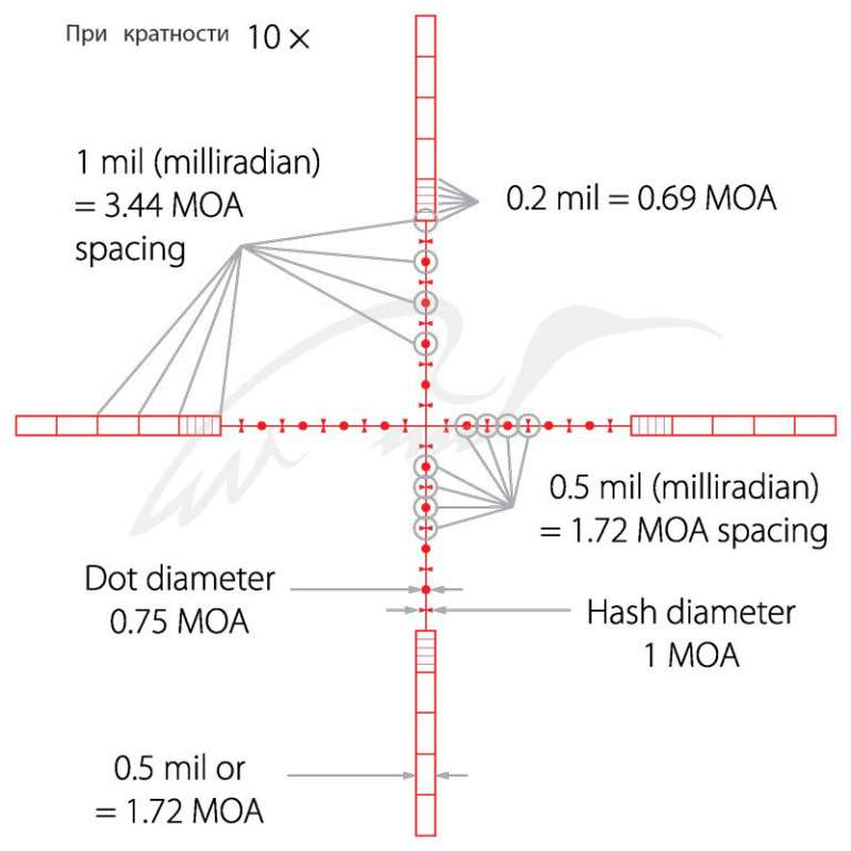 | Тип прицельной сетки: | 10x 1/2 MIL DOT |