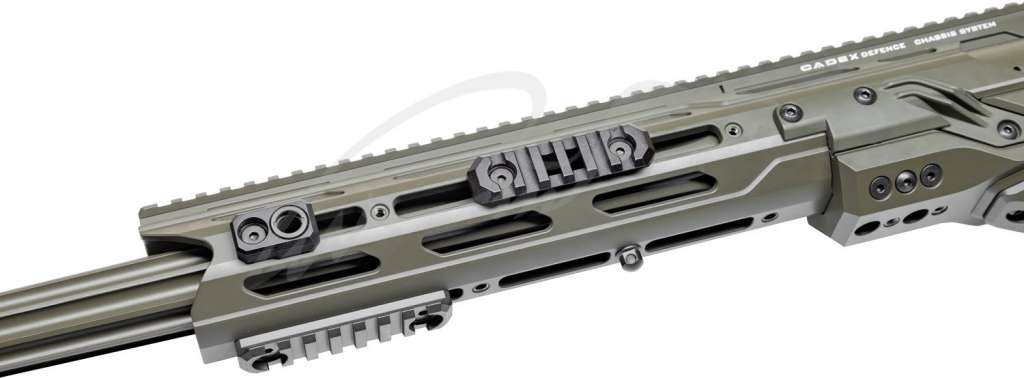 Карабин уложен в модульное тактическое алюминиевое шасси с V-образным беддингом «Cadex Dual Strike». Шасси состоит из нескольких функциональных частей: центральной - в которую непосредственно укладывается ресивер и лапа отдачи, а также крепления цевья, приемника магазинов и адаптера рукоятки. Питание осуществляется из стальных сьемных коробчатых магазинов.
