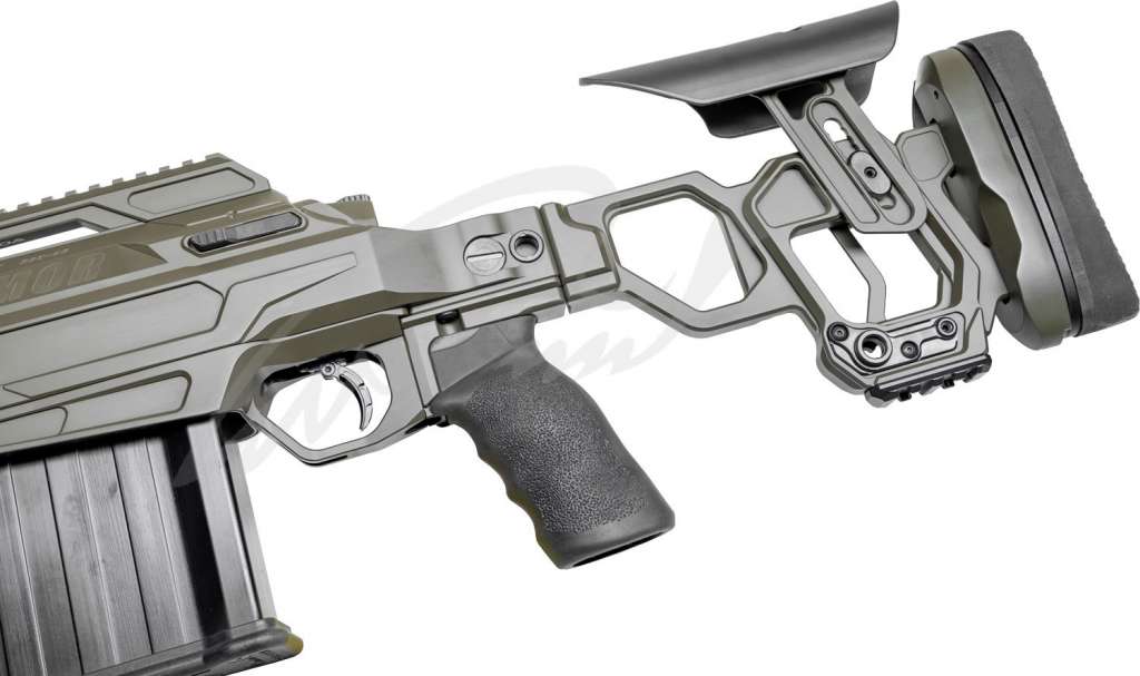 | Приклад (ложа): | Регулируемое шасси Cadex Sceleton |