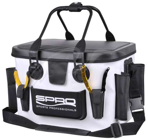 Сумка Spro EVA Tackle Bag – достаточно вместительная сумка, выполненная из прорезиненного синтетического материала. Крышка полужесткая, на которую можно положить заменяемую оснастку. Сумка сконструирована так, чтобы вещи, находящиеся внутри, не промокли, но при этом не нужно было делать лишних движений для доступа к ним. На передней части Spro EVA Tackle Bag расположены два стакана для инструментов, а также полужесткий не закрывающийся карман для мелочей, необходимых под рукой.