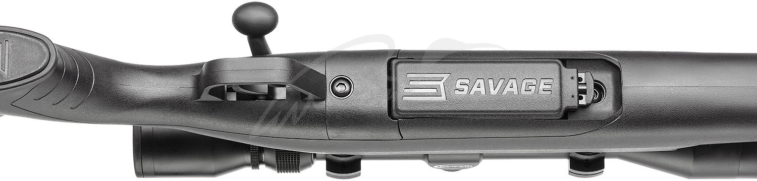 Запирание происходит по традиционной для карабинов Savage схеме - за стальную ствольную коробку двумя боевыми упорами "плавающей" личиной затвора.