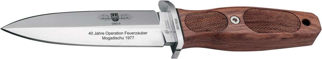 Осенью 2017 года исполнилось 40 лет со времени известной операции «Магический огонь» по освобождению самолета Lufthansa Landshut, захваченного террористами в Могадишо. Эта миссия была успешно выполнена группой из 30 бойцов подразделения GSG 9, основанного в 1972 году. Командовал группой основатель GSG 9 - Ульрих К. Вегенер. В память об этой операции компания Boker выпустила лимитированную версию ножей Applegate 4.5 и 5.5 под названием «Feuerzauber», ограниченную 500-стами экземплярами. На клинках присутствует эмблема подразделения GSG 9, рукояти ножей изготовлены из палисандра. Модель комплектуется высококачественными кожаными ножнами.