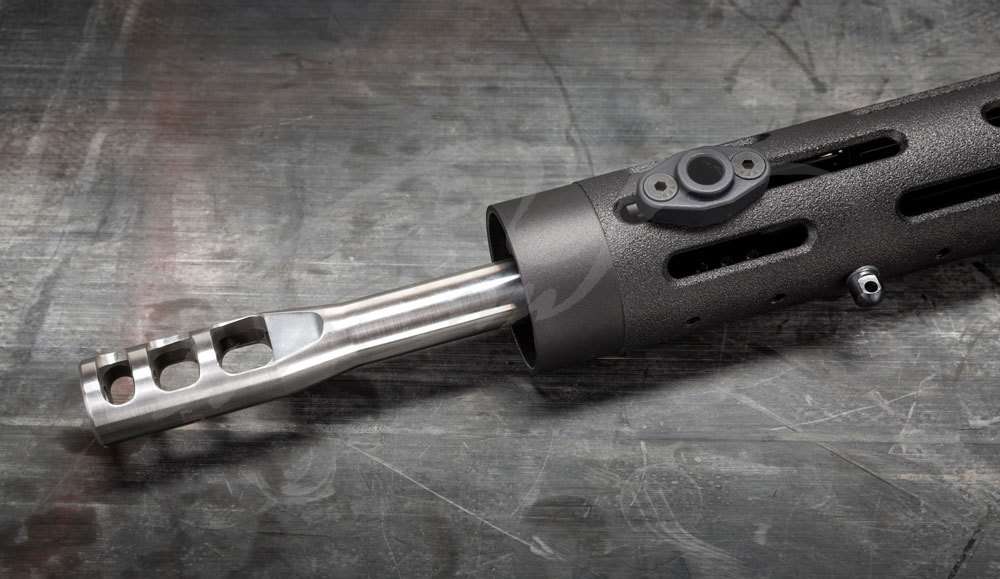 Свободно вывешенный матчевый ствол среднего контура «JP Supermatch™» изготовлен из нержавеющей стали марки 416R с применением криогенной обработки. Нарезы и поля нарезов формируются под давлением, методом «Button-rifling» - продавливания специального стержня внутрь просверленной заготовки ствола. Точность изготовления нарезов и внутренняя геометрия ствола контролируется с помощью воздушного датчика «Air gauge» - это метод, применяемый для определения колебаний высоты полей и нарезов внутри ствола с использованием постоянного потока воздуха через специальный зонд. Ствол посажен в ресивер с использованием технологии «Thermo-Fit™», что обеспечивает жесткую фиксацию с минимальными допусками. Установлен дульный тормоз-компенсатор JP. Внешняя поверхность ствола и ДТК отполированы.