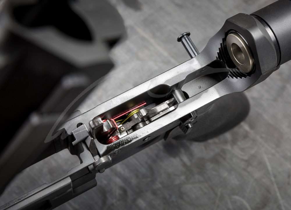 Для достижения максимальной кучности боя и надежности работы с широким спектром боеприпасов, используется низкопрофильный регулируемый газовый блок и патронник .223 Wylde. Шаг нарезов - 1:8” позволяет стабилизировать пули весом от 40 до 77 гран. Установлен спортивный одноступенчатый ударно-спусковой механизм «JP Fire Control System» с усилием спуска 1,8 кг.