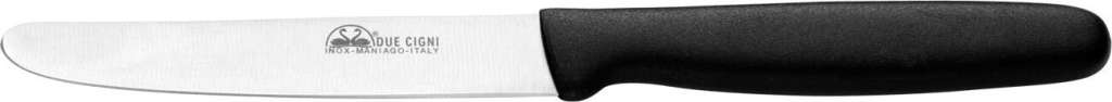 Кухонный нож Due Cigni Table Knife – сервировочный нож, предназначенный для использования за столом с готовыми блюдами для более комфортного приема пищи. Клинок с закруглённым острием выполнен из нержавеющей стали марки AISI 420C. Сталь обладает хорошими антикоррозийными свойствами и стойкостью к слабокислой среде. Рукоять выполнена из прочного и термостойкого полимера. Нож безопасен для мытья в посудомоечной машине.