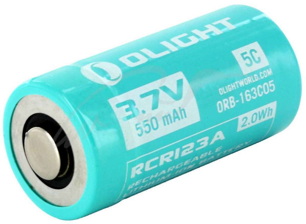 Производительная батарея формата RCR123A предназначена для фонаря Olight S1R Baton. При наличии этого типа аккумулятора возможна подзарядка фонаря.
