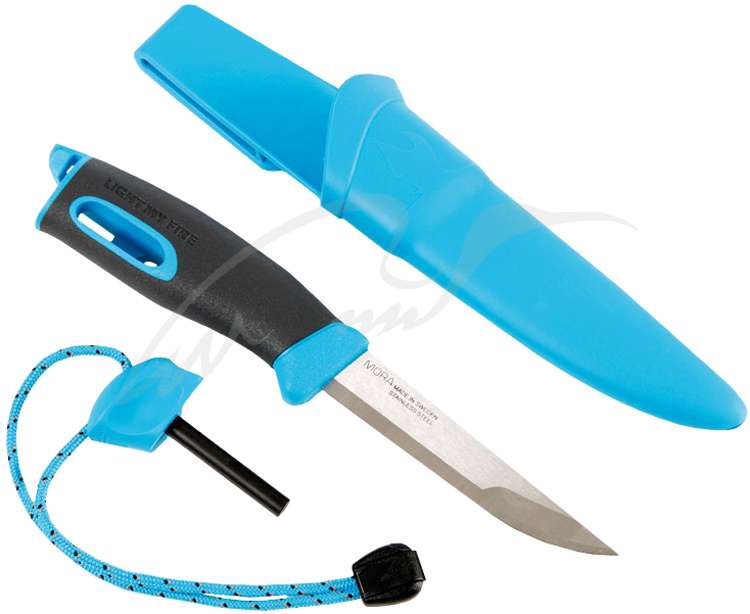 Нож с огнивом Swedish FireKnife - это продукт совместного производства двух шведских компаний Light My Fire и Mora. Универсальный нож Swedish FireKnife подойдет для туризма, рыбалки и путешествий. Лезвие ножа из высококачественной нержавеющей стали марки Sandvic 12C27 с особым углом заточки позволяет с легкостью резать твердые предметы (дерево, резину и прочее). Прорезиненная рукоятка удобна и легка. Пластиковый чехол для ножа оснащен зажимом для крепления на ремень. Комплект также содержит огниво Swedish FireSteel, которое работает даже при намокании и его хватает на 3000 ударов. Для удобства переноски огниво крепится к рукоятке ножа с помощью прочной текстильной петли, размер которой можно регулировать.