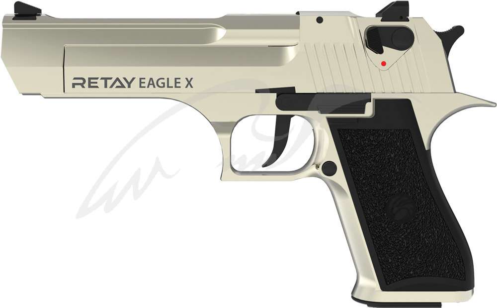 Retay Eagle X является полуавтоматическим стартовым пистолетом-репликой популярной модели Desert Eagle, предназначен для отстрела холостых патронов. Retay Eagle X имеет рамку, выполненную из стали и оригинальный эргономичный дизайн, оснащен УСМ одинарного действия. Комплектуется 18-зарядным магазином кал. 9 мм P.A.