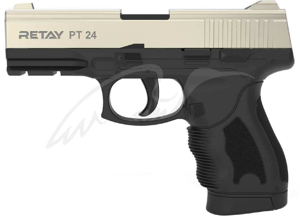 Полуавтоматический стартовый пистолет Retay PT24 является репликой знаменитого пистолета Taurus. Рамка пистолета выполнена из полимера. PT24 оснащен ручным предохранителем и системой блокировки с помощью поворота специального ключа. Часто используется армией и правоохранительными органами для обучения. Пистолет предназначен для отстрела холостых патронов.