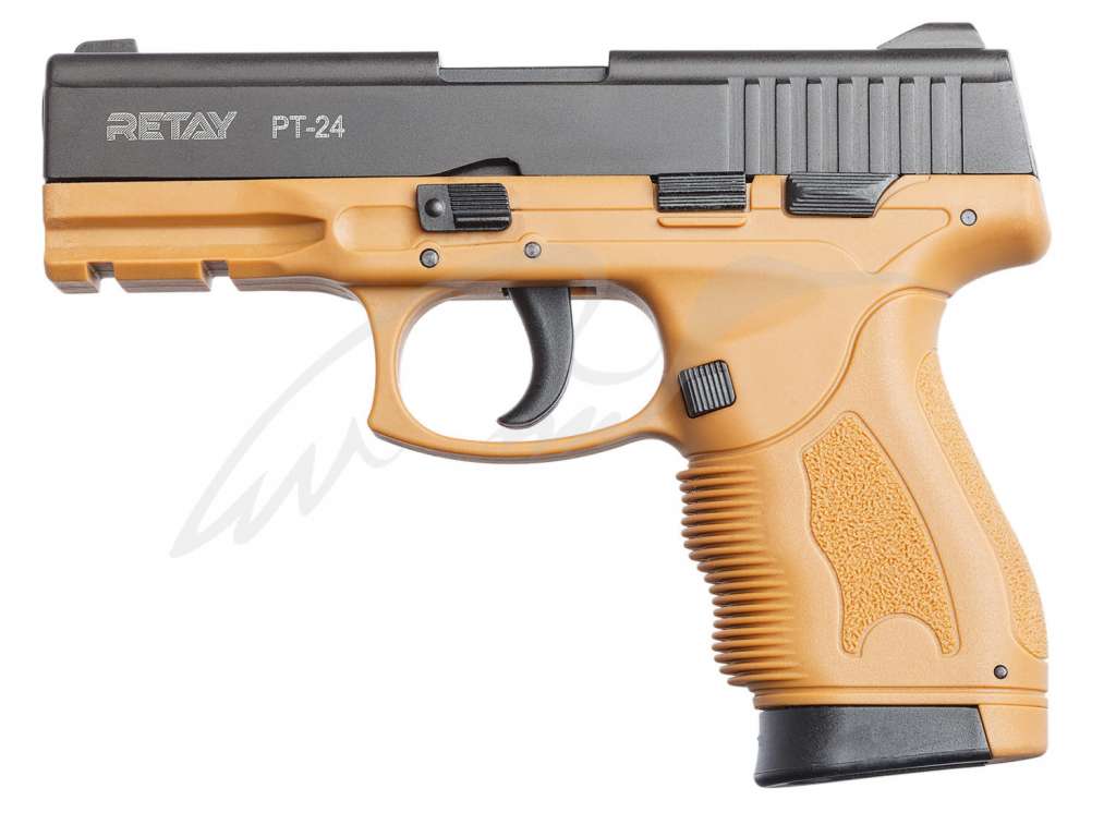 Полуавтоматический стартовый пистолет Retay PT24 является репликой знаменитого пистолета Taurus. Рамка пистолета выполнена из полимера. PT24 оснащен ручным предохранителем и системой блокировки с помощью поворота специального ключа. Часто используется армией и правоохранительными органами для обучения. Пистолет предназначен для отстрела холостых патронов.
