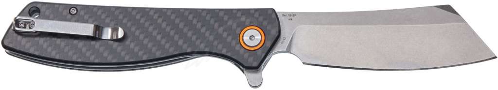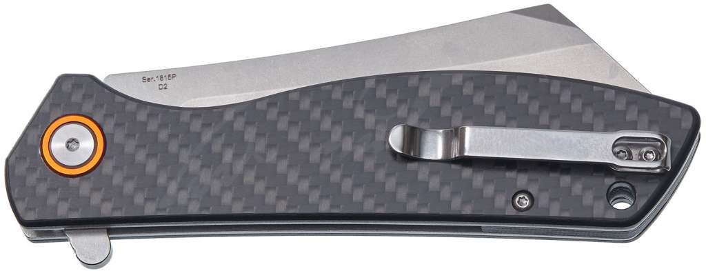 Клинок формы “Sheepfoot” изготовлен из высококачественной стали D2, которая длительное время держит заточку. Наличие флиппера позволяет быстро извлекать клинок одной рукой. Рукоять ножа изготовлена из углеродного волокна, что делает модель легкой и прочной. Шарикоподшипниковый механизм снижает фактор трения и позволяет извлекать клинок быстро, а замок типа Liner Lock надежно фиксирует его в рабочем положении. На данной модели имеется крепление для темляка и карманная клипса.