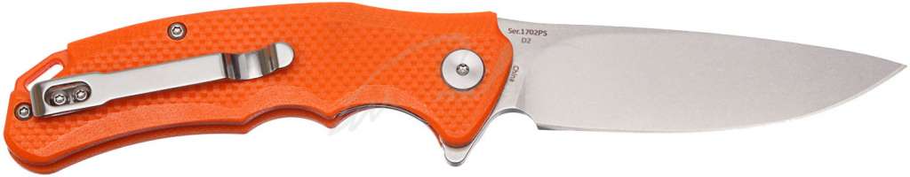 Модель оснащена клинком формы drop point изготовленным из высокопрочной стали D2. Такая форма клинка считается оптимальной, так как обеспечивает ножу более широкий спектр использования.