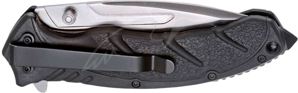 Клинок изготовлен из нержавеющей стали 440А, извлекается при помощи шпенька или флиппера и фиксируется замком Liner Lock. Накладки рукояти выполнены из стеклотекстолита G10 с прорезиненными вставками, которые способствуют более надежному удержанию ножа. Уже в самом названии модели Breaking Glass подразумевается наличие стеклобоя, который может оказаться очень полезным при возникновении непредвиденной ситуации. К примеру, если необходимо разбить стекло автомобиля. Карманная клипса позволяет удобно закрепить нож на поясе, в кармане или на снаряжении.