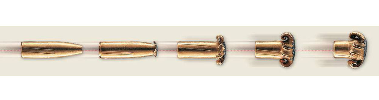 | Дополнительная информация | Полуоболочечная пуля с двойным сердечником, разделённым перегородкой. При попадании в цель диаметр увеличивается в 2,5 раза, при этом масса почти не изменяется. Обладает высоким останавливающим действием и пробивной способностью. |