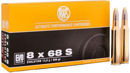8x68 S - первоклассный патрон для охоты на все виды горной дичи, вплоть до аргали и вапити. Идеально подходит и для "Plains-Game" в африканской саванне. Патроны для крупной копытной дичи, снаряженные пулями от 11,7 до 14,5 г., используются по всему миру как универсальные. 8x68 S - высокоточный скоростной патрон, наиболее подходящий для охоты на большой дистанции. Патрон был разработан фирмой RWS в 1939 г. и обозначается также "безфланцевый Magnum". Он представляет собой новый класс мощности по сравнению со стандартным 8-мм патроном 8x57 IS. 8x68 S, благодаря своей высокой настильности, демонстрирует, прежде всего, увеличенную дистанцию выстрела. Эффективность 8x68 S, как правило, немного выше, чем у патронов .30 Magnum.