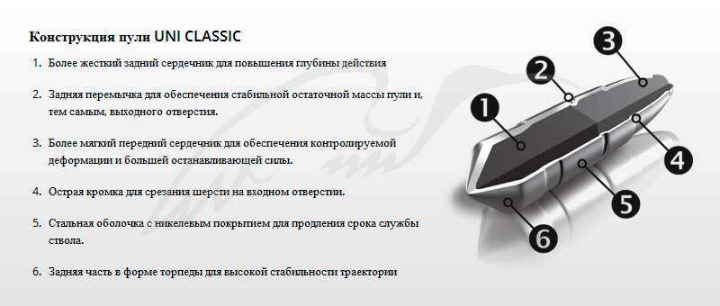 | Властивості кулі: | Контрольована деформація (гриб),висока проникаюча здатність |