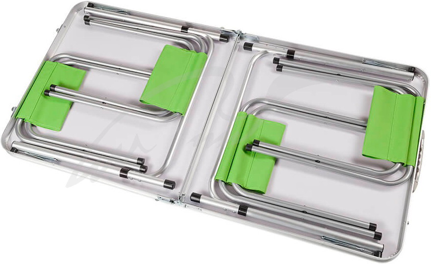 Набор мебели Кемпинг XN-12064 + 4 стула для кемпинга рассчитан на компанию из четырех человек. Столешница состоит из двух панелей изготовленных из МДФ (5 мм) с нанесением пластиковой пленки, по бокам пленка усилена алюминиевым профилем. Ножки стола изготовлены из прочных алюминиевых труб диаметром 19 и 25 мм. Стулья тоже изготовлены из алюминиевых труб диаметром, сидение обшито прочным и износостойким материалом. Стол складывается в очень компактный чемодан, внутри которого размещаются все четыре стула. Для удобства при транспортировке у чемодана предусмотрена прорезиненная ручка. Поставляется в комплекте с чехлом, который сбережет столешницу от механических повреждений во время транспортировки.