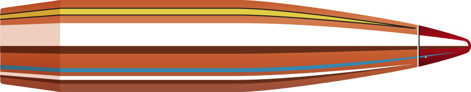 При попадании в цель на высокой скорости, соответствующей дальностям до 400 ярдов/365 метров, пуля постепенно раскрывается по мере продвижения сквозь ткани цели. Оболочка увеличенной толщины в хвостовой части и кольцо InterLock, удерживающие сердечник и оболочку вместе, способствуют сохранению до 50-60% исходной массы.