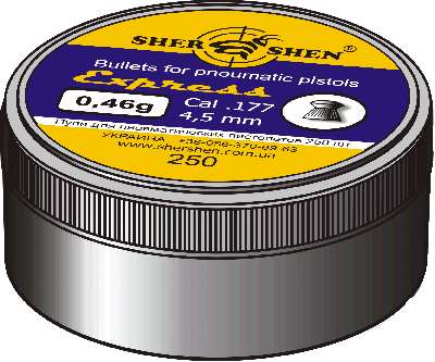 Пуля “Exspress” выпущена специально для стрельбы из пистолетов, т.к. пистолеты обладают сравнительно низкой мощностью, то для них оптимальной является эта облегченная пуля. Пуля классической формы «Диаболо» с плоско-выпуклой головной частью, вес 0,46 грамма. Пуля универсальная, предназначена для спортивной и развлекательной стрельбы, из нарезных пистолетов по различным мишеням. Обладает высокой кучностью. Пуля может использоваться в винтовках с низкой дульной энергией.